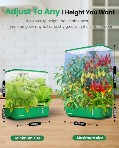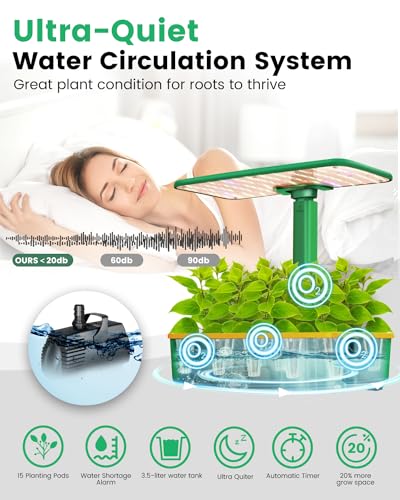 Hydroponics Growing System Kit 15Pods, Indoor Herb Garden with LEDs Full-Spectrum Plant Grow Light, Plants Germination Kit, Height Adjustable, Ideal Gardening Gifts for Women, Green