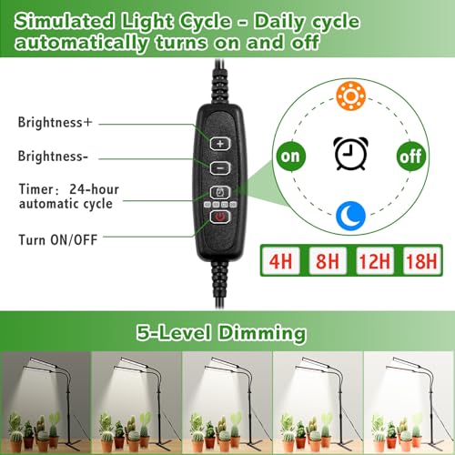 Grow Lights for Indoor Plants, Full Spectrum LED Tabletop Plant Lights for Indoor Growing, Dual-Head Gooseneck Plant Lamp with 5 Dimmable & Auto On/Off 4/8/12/18H Timer, Height Adjustable 9.8-25”