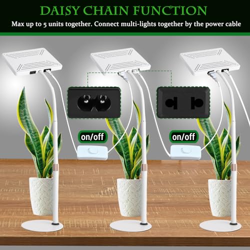 【On/Off Switch & Daisy Chain Function】This plant light for indoor plants designed with an input plug and an output outlet. You can connect max 4 units lights together by daisy chain function and only need one outlet.