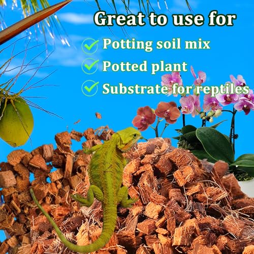 Wide Usage: Coconut husk bricks mixed with potting soil, clay or charcoal to create your own potting soil mix makes it an ideal growing medium for plants, orchids. In addition, coir chips husk is an ideal substrate for reptiles.