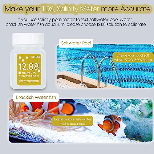 Make your Salinity/EC/TDS Meter More Accurate: Do you have the following troubles? Just bought a salinity meter, why is it inaccurate? After 2 months, why is the salinity meter inaccurate? No need to buy a new Salinity/ec/tds meter, just choose the 12.88 mS/cm calibration solution to help you solve these questions, make your salinity meter more accurate and last longer service life! Calibrate once a week, enjoy precision, and Say goodbye to imprecise