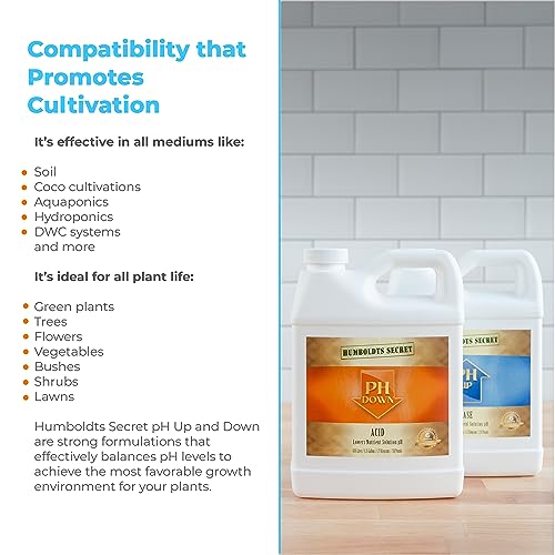 Balanced Nutrient Solution: Use Humboldts Secret pH Up and Down to adjust the pH of your plant nutrients. A balanced pH solution will allow your plants to achieve maximum nutrient absorption resulting in increased plant production.