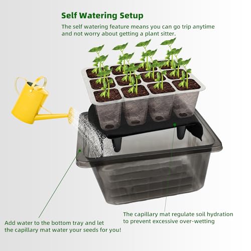 【Innovative Self Watering Design】: Self-Watering seed starter kit provide a more comprehensive & smarter condition for seedlings growing. It eliminates the possibility of over watering or under watering issues,and can maintain a better soil moisture level, promoting healthier root development to make your seed germination rate more efficient. Moreover it is very convenient and effortless, perfect seed starter for beginners.