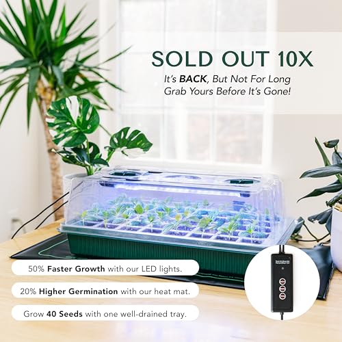 Upgraded Seed Starter Tray with Grow Lights and Heat Mat, 3-in-1 Soil Meter, & Sticky Gnat Traps, 40-Cell Seed Growing Tray, Germination & Plant Propagation Station for Indoor Plants
