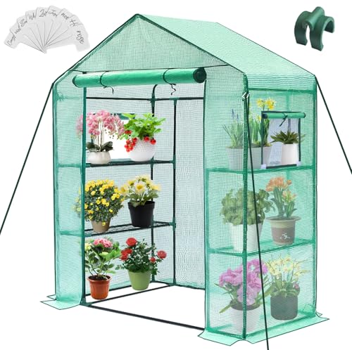Green oasis in your garden: 28 x 56 x 75″ Greenhouses for outdoors, with ample internal space can easily fit up to 12 plant pots at once. Green house with adult-friendly 6.4ft height & bigger roll-up door, you’ll have easy access to tend to your beloved plants, provides you better gardening experience, and grow any plant without weather and area limited, elevate your garden to the next level, build up your own lush oasis