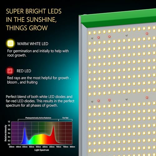 ☼AQ300 LED Sunlike Bright Grow Lights: utilize the latest plant light in high yielding LEDs technology, extremely high output but consumes only 100W. PPFD is 2.6 umol/J,par value is 260umol/s. 296pcs white warm and red LEDs includeds to make it a full-spectrum light. Aluminum heat sink used make it a quiet led light.