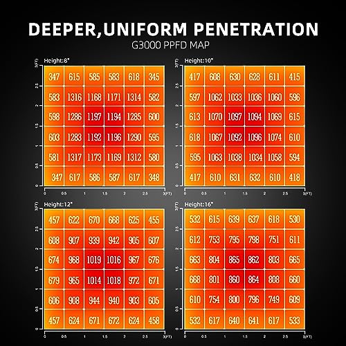 【MAXIMUM UNIFORMITY & EFFICIENCY】: Unique designed 4 extended LED bars to edges which can provide more even canopy coverage, especially to the outer edges of cultivation areas. With 896pcs Bridgelux diodes, G300w Led grow light draw 300 watts with 828.8umol/s, achieving an impressive PPE of 2.75 umol/J, coverage for 3’x3′ of high-yielding full-cycle growth.