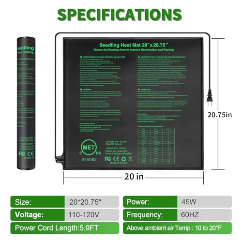 Seedling Heat Mat 20″ x 20.75″ Warm Hydroponic Plant for Indoor Gardening Germination Starting, Waterproof Durable