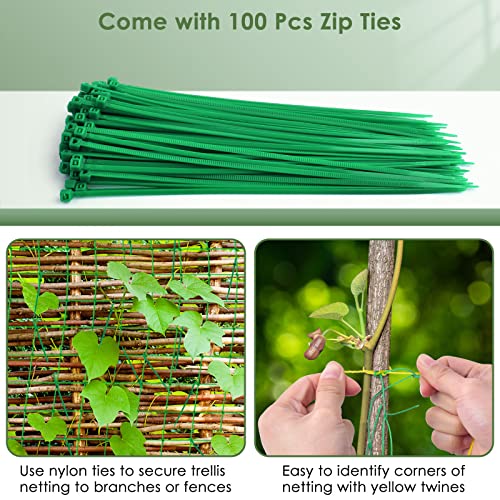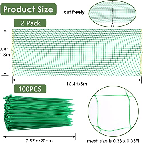 PACETAP 2PCS 6×16.4Ft Trellis Netting for Outdoor Climbing Plants, Garden Plant Trellis Netting with 100PCS Zip Ties for Cucumber, Tomato, Vine, Vegetable Fruit and Flowers