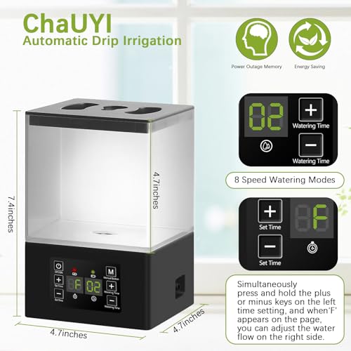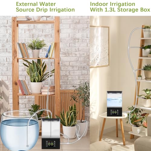 New Upgrade 2 Ways Automatic Watering System Kits: ChaUYI plant watering devices was versatile, 1.3L storage box can store water ensures indoor plant irrigation and it can also be connected to external water sources to used as a vacation plant watering devices satisfied your water plants while away.