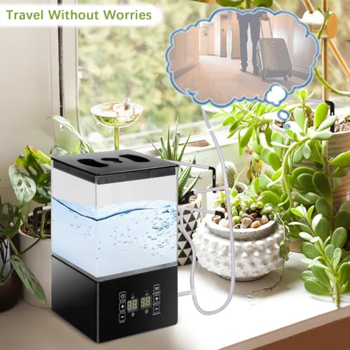 Automatic Watering System for Potted Plants, Watering System for Plants Indoor Vacation, 2 in 1Drip Irrigation Kits with 8-Speed Water Control Smart Programmable Timer (1.3L Storage Box)