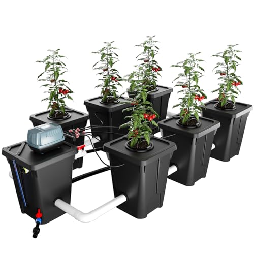 RDWC Hydroponics Grow System 6 Site + Reservoir, 7-Gallon Top Drip Recirculating Deep Water Culture Hydroponic Bucket System, Hydroponics Growing System Kit with Water Pump, Air Pump