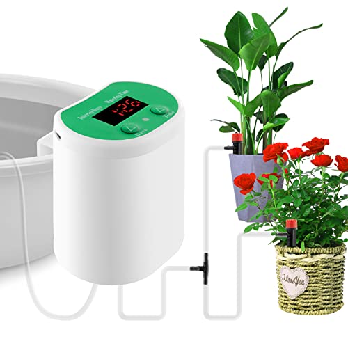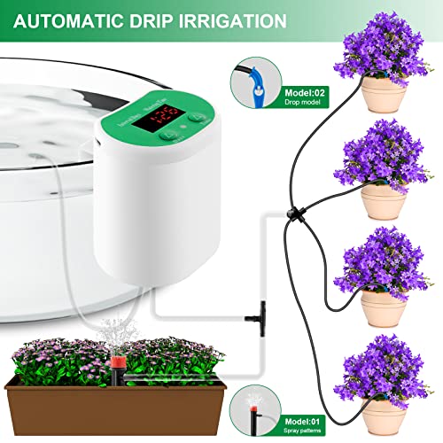 AUTOMATIC PLANT WATERING SYSTEM: This digital watering system is equipped with a pump and watering timer to drip water potted plants more precisely, helping us save water drop by drop. Draws the correct amount of water from the container and is more efficient than traditional sprinklers and drippers.